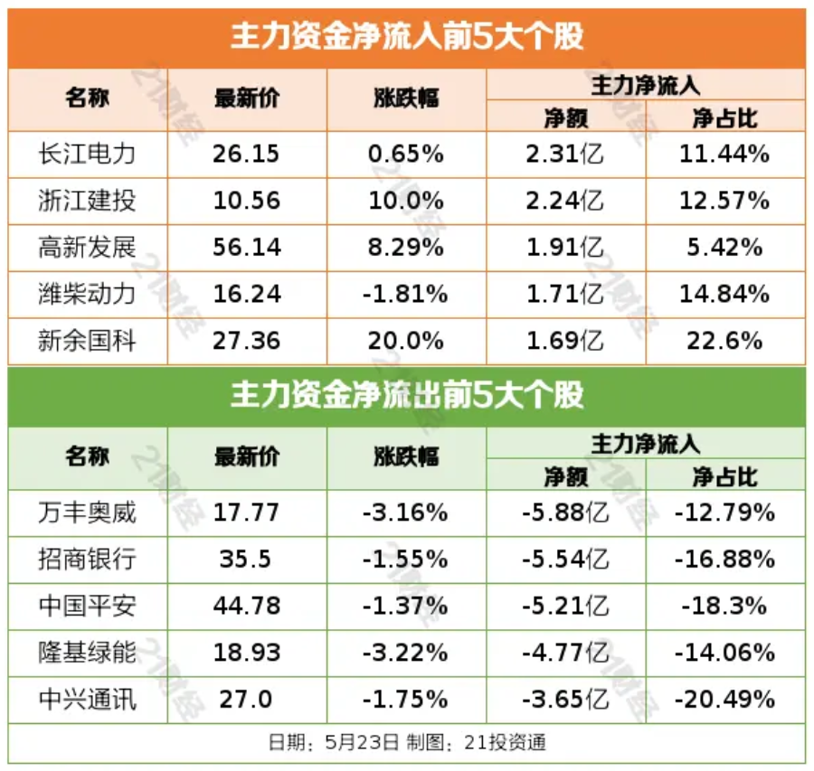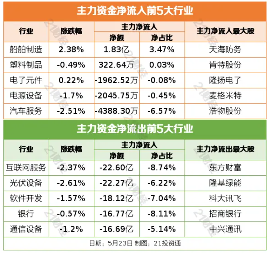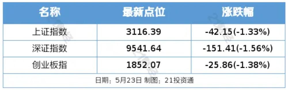5月23日,市集全天低开低走,三大指数均跌超1%,两市超4500只个股下降。适度收盘,沪指跌1.33%,深成指跌1.56%,创业板指跌1.38%。板块方面,PEEK材料、AI PC、次新股等板块涨幅居前,贵金属、有色金属、素养、短剧等板块跌幅居前。沪深两市成交额8477亿,较上个交以前放量165亿。