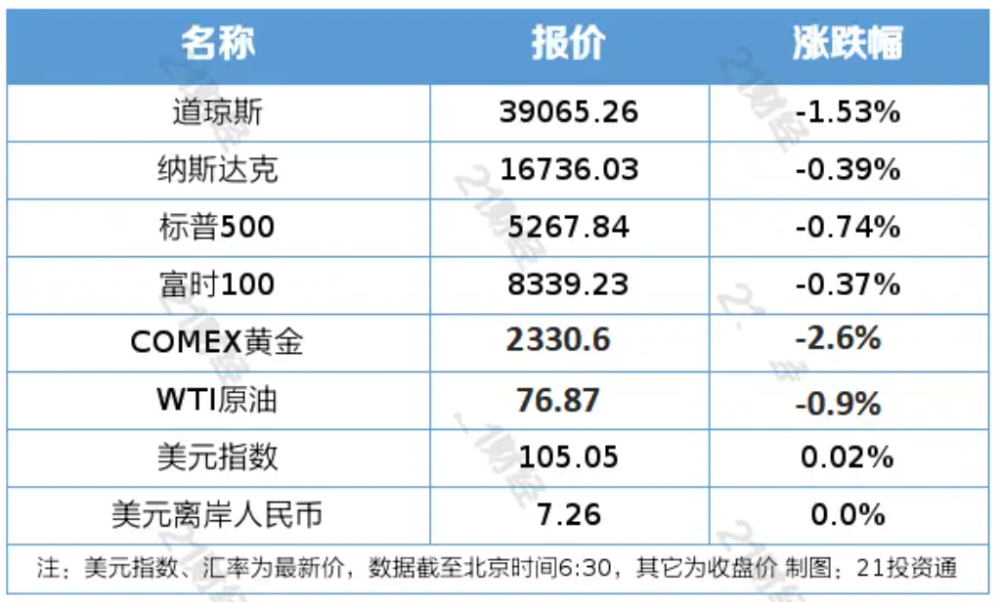 纽约股市三大股指23日下降。说念琼斯工业平均指数比前一交以前下降605.78点,收于39065.26点,跌幅为1.53%;圭臬普尔500种股票指数下降39.17点,收于5267.84点,跌幅为0.74%;纳斯达克详尽指数下降65.51点,收于16736.03点,跌幅为0.39%。