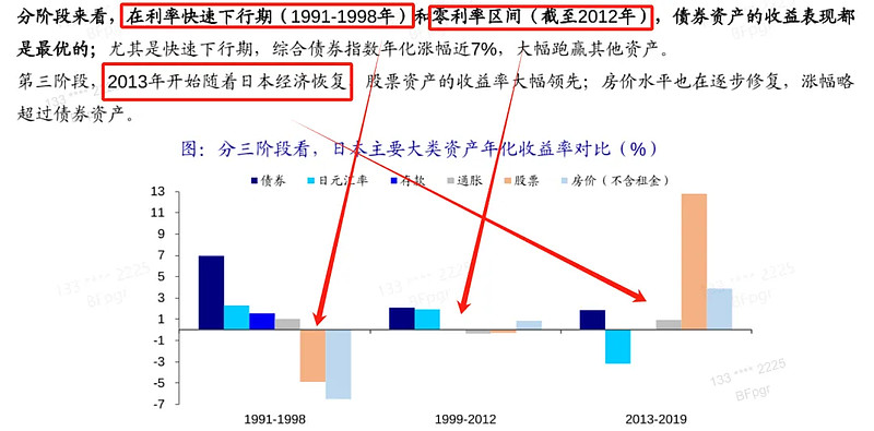 海通证券,把日本利率快速下行期,零利率区间与经济复苏期各类钞票的发达作念了一个统计: