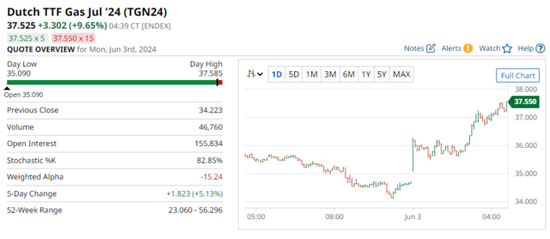 数据显现,周一阿姆斯特丹期货来往所的荷兰自然气期货合约大涨10%,现报每兆瓦时37.53欧元。英国自然气价钱也出现高涨。