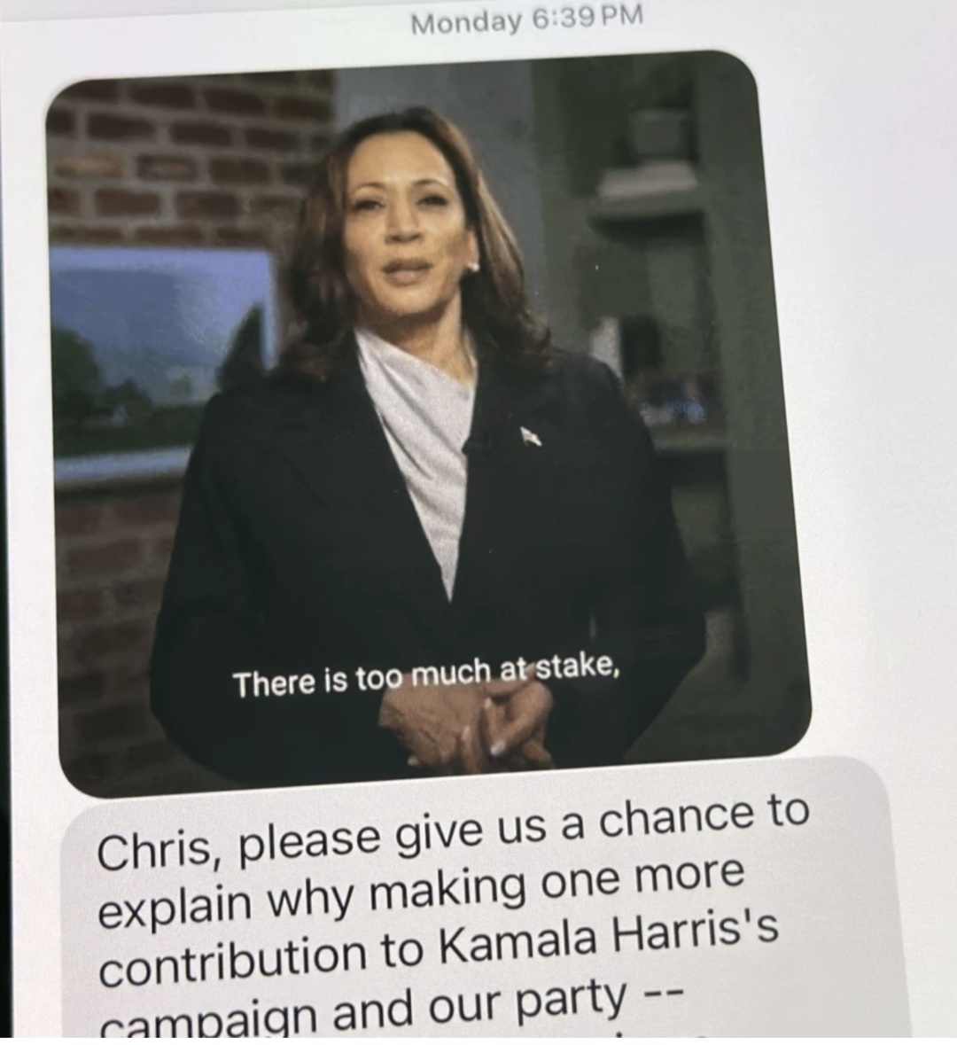 “我是特朗普。我刚从麦当劳出来。”“我是哈里斯。但愿你为我的竞选举止捐钱。”“我是佩洛西,请你望望这个消息。”