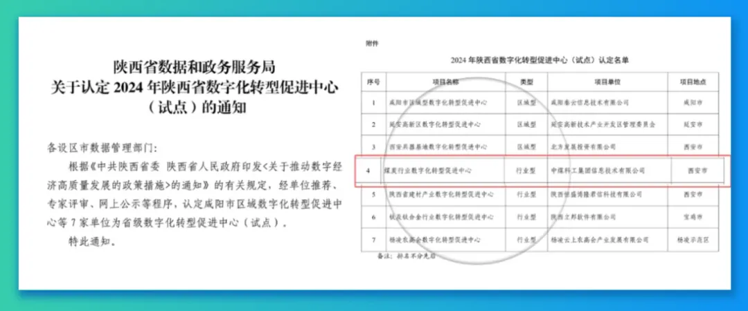 近日,陕西省数据和政务劳动局负责发布了“2024年陕西省数字化转型促进中心(试点)”认命名单,中国煤科信息公司动作中国煤科数字化转型的主力军,汇报的煤炭行业数字化转型促进中心(行业型)(以下简称煤炭数促中心)入围陕西省首批数字化转型促进中心(试点)认命名单,成为陕西省首批7家试点单元中唯独一家入围煤炭行业数字化转型居品与搞定决议的企业。