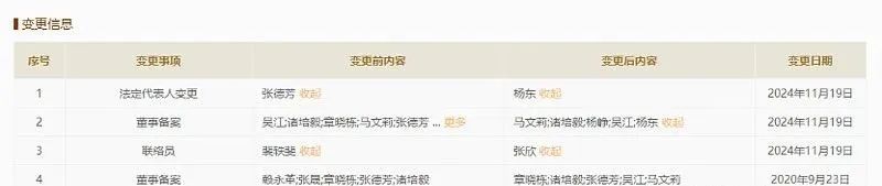 具体来看,上海东兴投资的法定代表东谈主、董事长从张德芳变更为杨东;章晓栋(董事)从主要东谈主员中退出,新增主要东谈主员杨峥(董事)。
