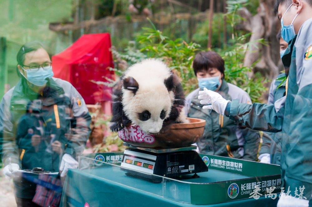 自出身以来,“妹猪”一举成为长隆乃至大湾区最受宠的小公主。从穿上“背带裤”、初次睁眼、变声期的牛叫和夹辅音,到和“奶爸”用粤语疏导、时常“翻窗出去玩”……“妹猪”的每一次朝上,都成为大众关注的焦点。在半岁宴庆生现场,长隆保育天团从体重、三围、乳齿、心率等多项成长策画,为“妹猪”进行了全方向的体检。体重10.88千克,体长65厘米,尾长9.5厘米,24颗乳齿很整皆、看成生动有劲……短短半年,妹猪“长”势喜东谈主,已有了迷你“女王”的风仪。